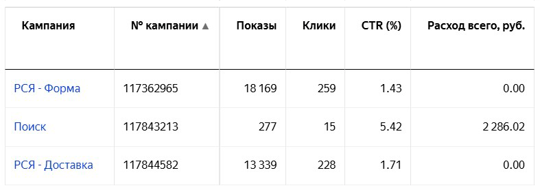 На первой неделе была запущена поисковая и 2 РСЯ кампании:
