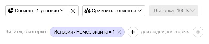 Теперь отфильтруем данные и оставим только посетителей, у которых на сайте это был первый визит: