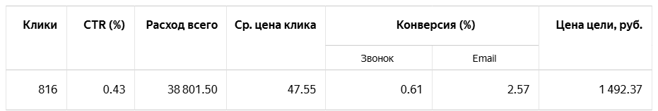 В целом, всё совпадает. Конверсия в данном случае 3,18% но для корректности звонки лучше исключить, там много некачественных заявок и получится конверсия примерно 2,5%, а это 5 заявок с 200 кликов. Итого одна заявка при таких вводных будет стоить 35 тыс. / 5 = 7 тыс рублей.