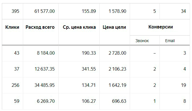 Были и нормальные кампании в плане цены конверсии, но они давали слишком мало конверсий. Например, нормально работала кампания на сборку конструкций: